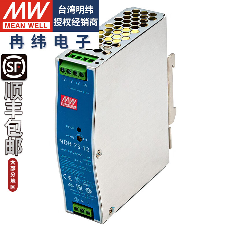 明纬(MEANWELL)明纬开关电源12v10A导轨式NDR240W24伏48V20A直流LED灯驱动变压器 NDR-75-12