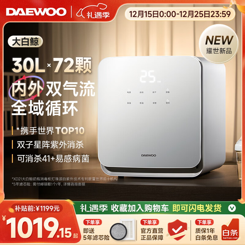 大宇婴儿奶瓶消毒柜带烘干二合一体机宝宝专用锅母婴紫外线消毒器 【大白鲸】 30L 紫外线消毒 消毒柜【72颗灯珠+速烘干】