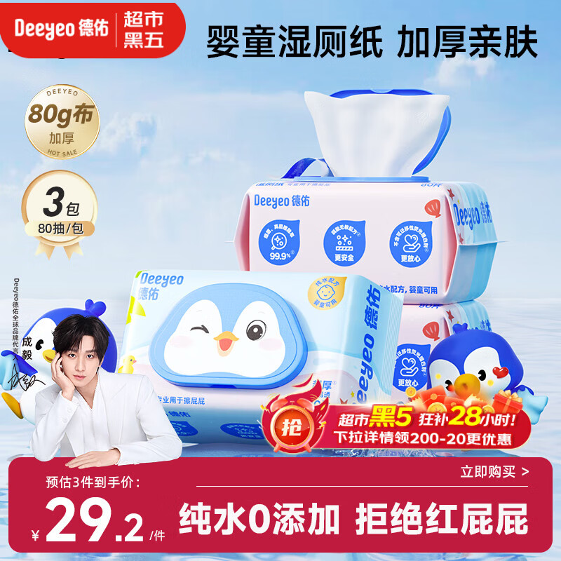 德佑婴童湿厕纸80抽1包体验婴儿红屁屁护臀专用洁厕湿巾纸0敏母婴通用
