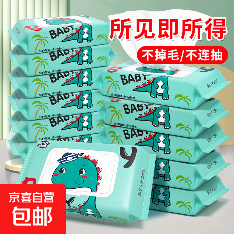 婴儿湿巾纸超柔保湿加厚母婴手口湿巾包包学生老人通用 48抽 1包 小恐龙 1包【体验装】