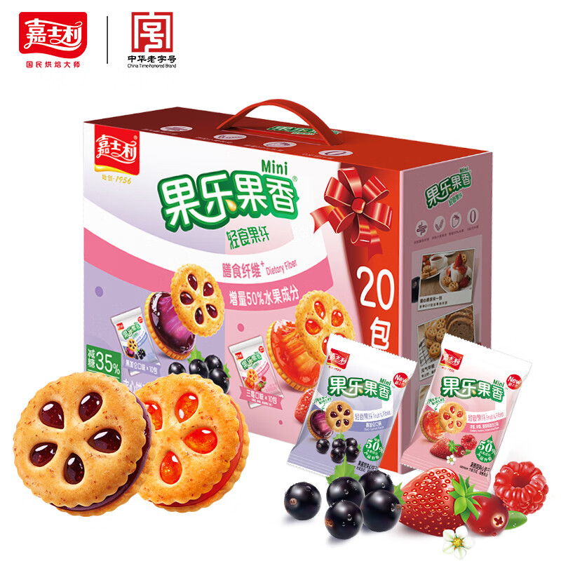 嘉士利果乐果香水果酱夹心饼干办公室小吃零食饱腹食品 552g-轻食果乐礼盒装(黑加仑+三莓)