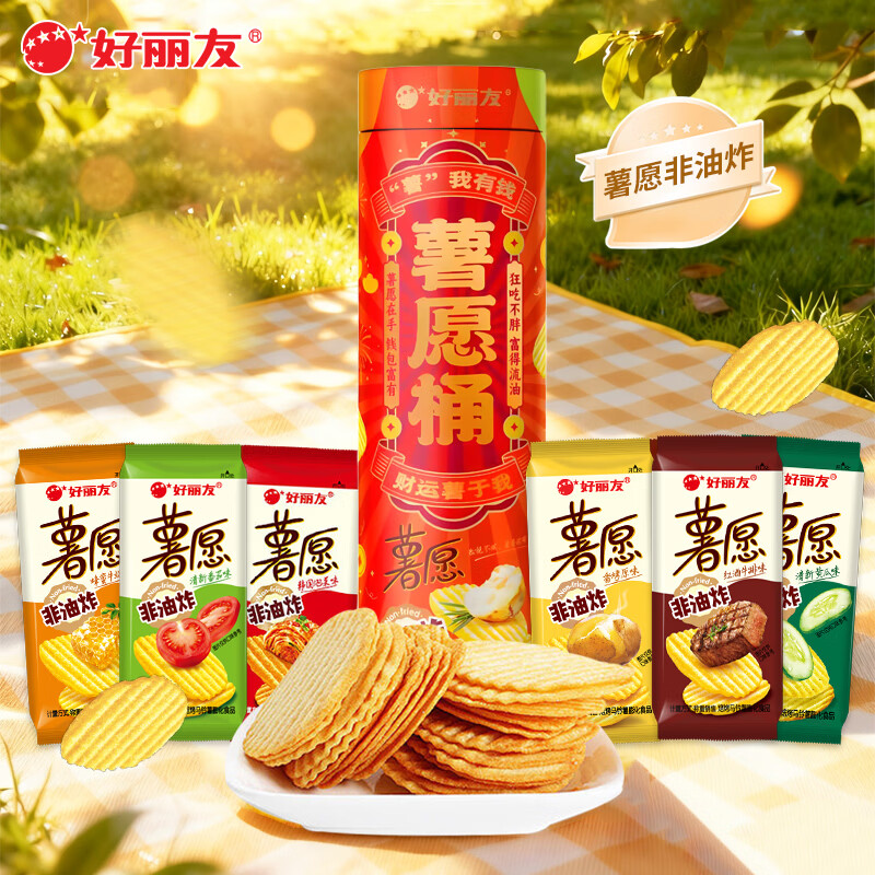 好丽友(ORION) 薯愿混合多口味422g/桶装薯片焙烤非油炸膨化零食品休闲下午茶 混合口味【422g】