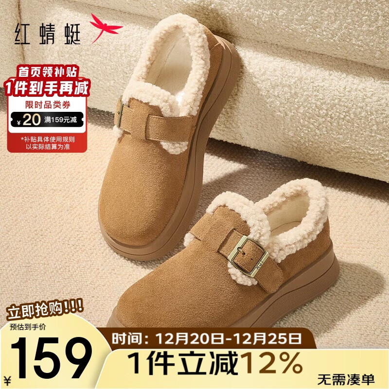红蜻蜓毛毛鞋女冬款厚底加绒勃肯鞋雪地靴棉鞋WTC44660 驼色 37