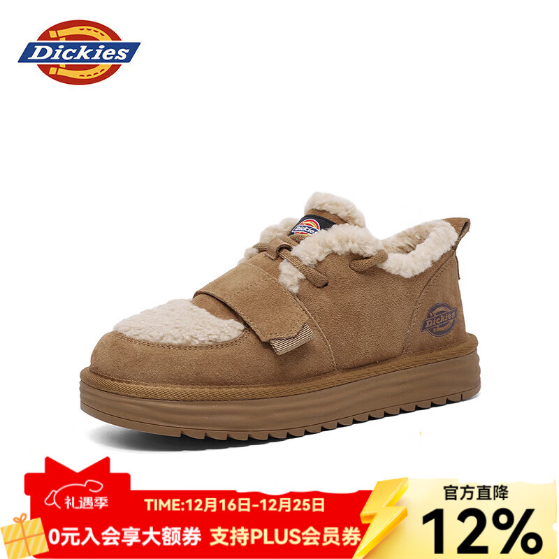 Dickies女士雪地靴舒适休闲平底鞋加绒加厚棉鞋 黄棕 36