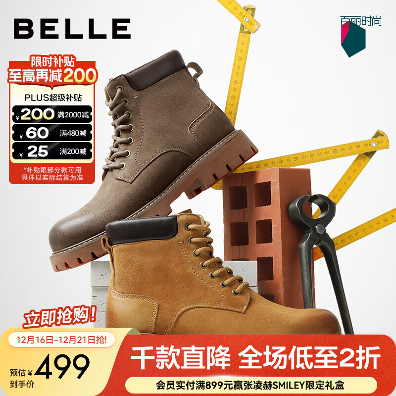 百丽(Belle)厚底马丁靴工装靴男鞋2025新款冬商场同款休闲靴加绒8WH01DD5预售 卡其/棕(单里) 44 (270mm)