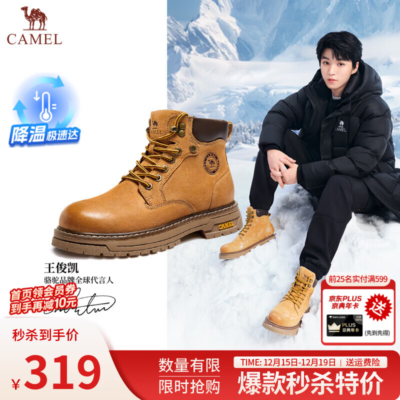 骆驼(CAMEL)马丁靴男王俊凯同款工装大黄靴女冬季穿搭通勤金甲户外徒步登山鞋 G15W136025 沙漠黄-男 42