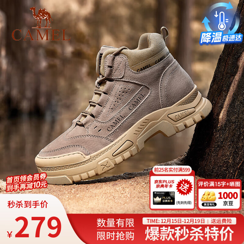 骆驼(CAMEL)马丁靴复古休闲工装靴秋冬季加绒户外徒步厚底情侣款增高登山鞋男 G14W076684 卡其 42
