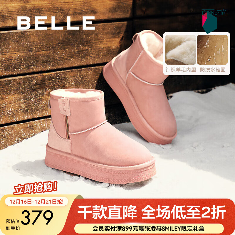 百丽(Belle)君妍同款小暖炉2代厚底雪地靴女棉鞋加绒保暖短靴D1K2DDD4预售 粉色 第二代(新色) 38 (240mm)