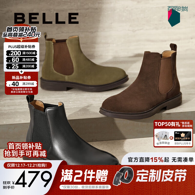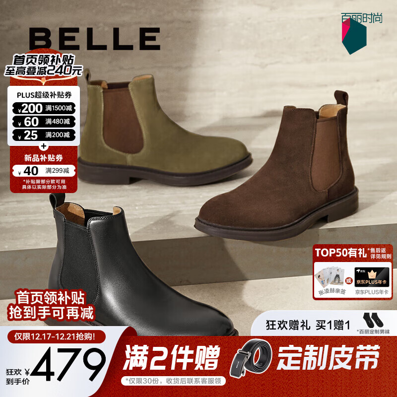 百丽男鞋商务切尔西靴子冬季新款加绒厚底马丁靴A1690DD4预售 绿色-绒里(绒面款) 38 (240mm)