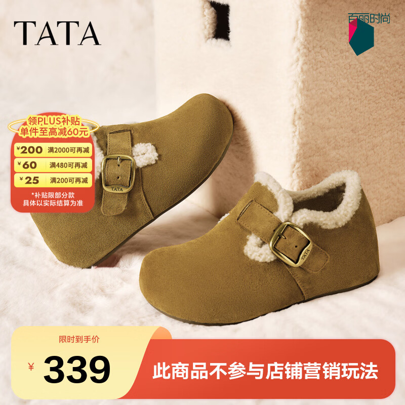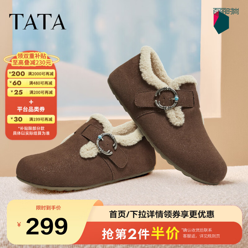 他她(TATA)女鞋2025冬季新款加绒勃肯鞋保暖鞋子棉鞋休闲鞋CF702DM5 啡色(绒里) 36