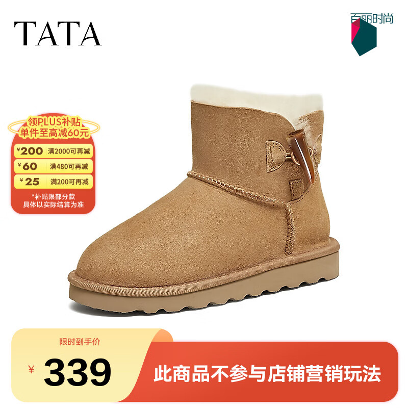 他她(TATA)云感毛毛鞋雪地靴皮毛一体保暖加绒短筒女鞋棉鞋MXZ01DM5 黄棕(高帮款-毛里) 36