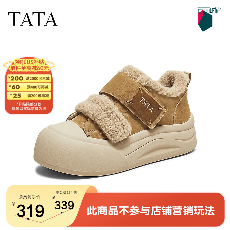 他她(TATA)棉鞋女2025冬季毛毛单鞋厚底加绒保暖女鞋防滑鞋子CYY07DM5 棕色(仿毛里)-魔术贴款 37
