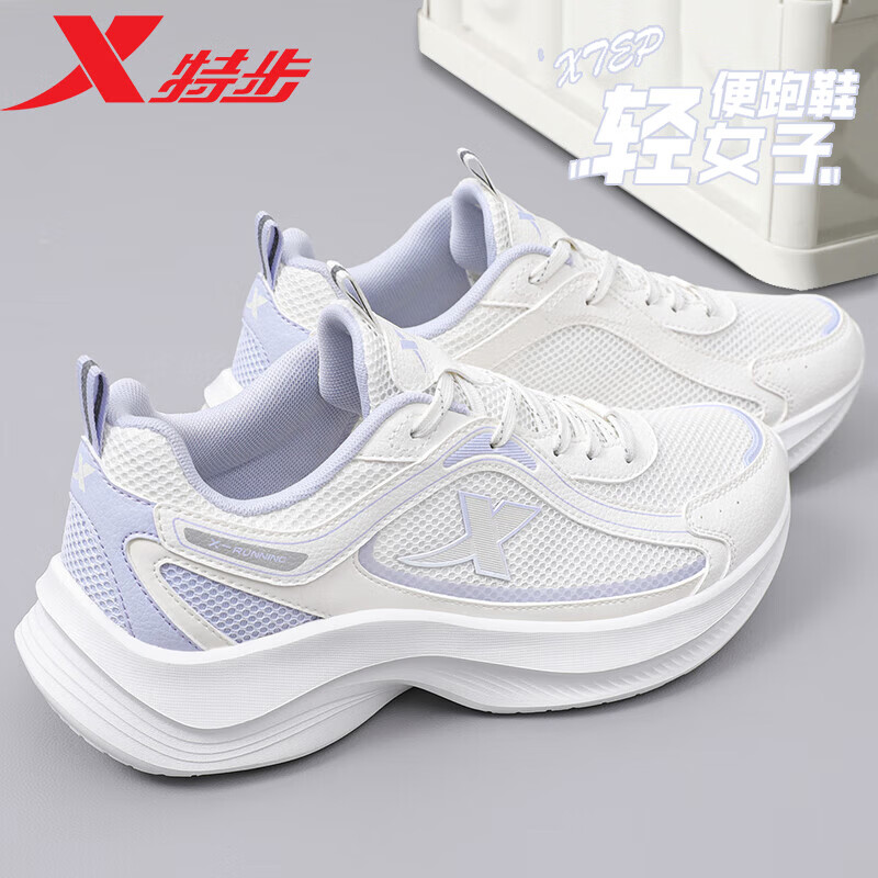 特步女鞋运动鞋子女春夏季新款网面软底跑步鞋女士轻便减震透气休闲鞋 帆白/浅暮蓝 【店长推荐】 38 (美码7.5)脚长240mm 【官方正品】