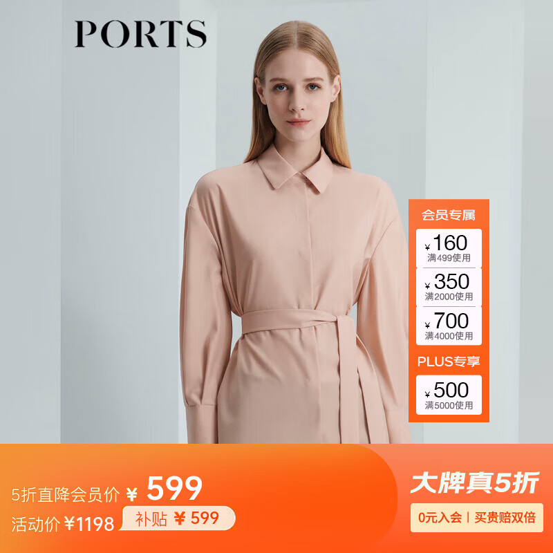 PORTS宝姿女装秋季新款优雅风绑带收腰中长款衬衫LL9B074LWT009 香槟粉 XS (2)