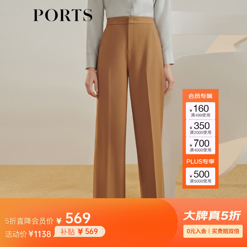 PORTS宝姿女装 秋冬新品宽脚口长裤LL9P081LWW042 深咖哩褐 M (6)