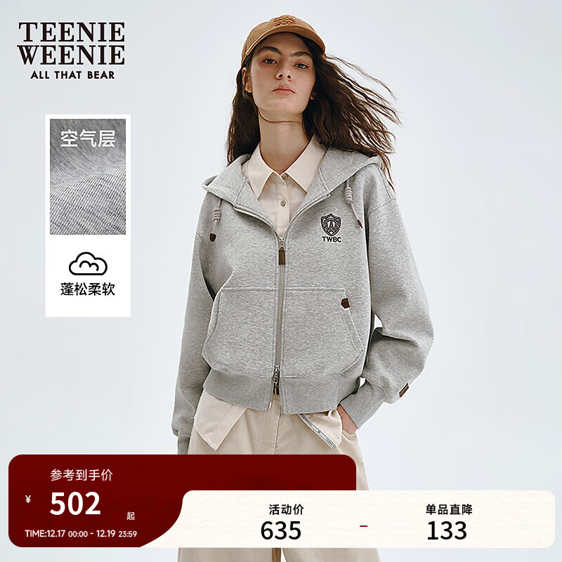 Teenie Weenie小熊女装卫衣2025秋冬新款简约时尚休闲舒适连帽外套 中灰色 S
