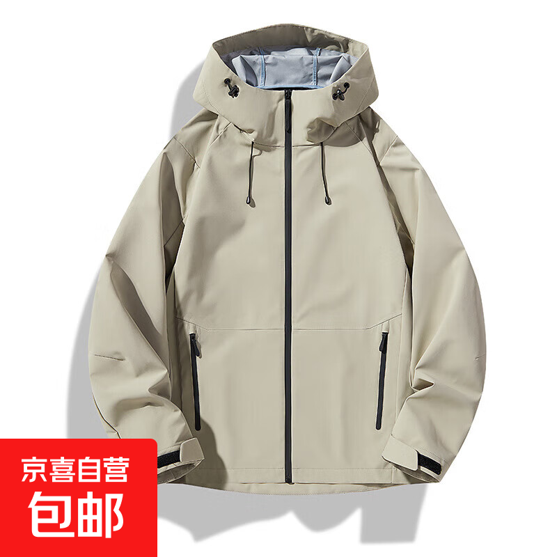秋冬新款宽松加绒保暖压胶防水防风抽绳外套软壳冲锋夹克女装外套 男女同款-砾石灰 XL