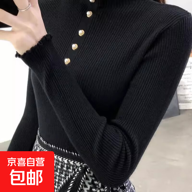 秋冬新款洋气半高领套头毛衣女装修身针织打底衫长袖内搭上衣 524黑色 均码