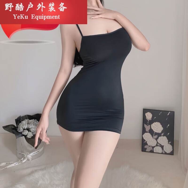 糜岚(MieLanat)女士性感睡衣冰丝薄款吊带睡裙女秋冬纯欲家居服甜美诱惑内衣 均 黑色