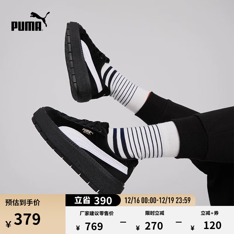 彪马(PUMA)【厚底鞋】女经典复古增高休闲鞋松糕鞋 PLATFORM 372613 黑色-白-01 37