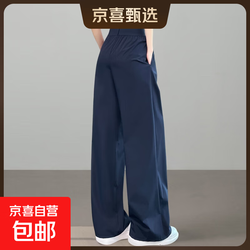 藏青色加长窄版阔腿裤女夏天薄款高个冰丝裤子2025速干休闲网球裤 蓝色加长 S