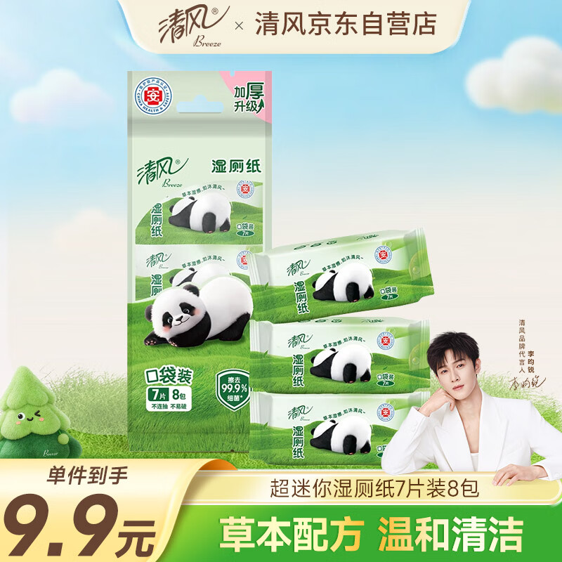 清风【李昀锐同款】超迷你湿厕纸7片*8包56片便携装 温和杀菌
