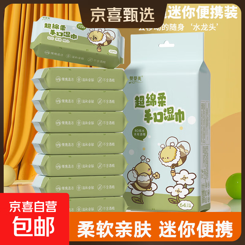 婴童迷你湿巾小包婴幼儿手口清洁湿巾随身便携抽取式湿纸巾 小蜜蜂湿巾1提 8抽 8包