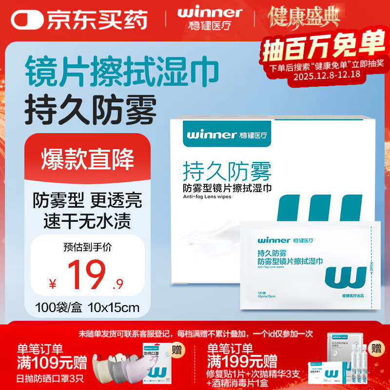 稳健眼镜清洁湿巾 防雾眼镜湿巾100片屏幕清洁不伤屏大尺寸10*15cm