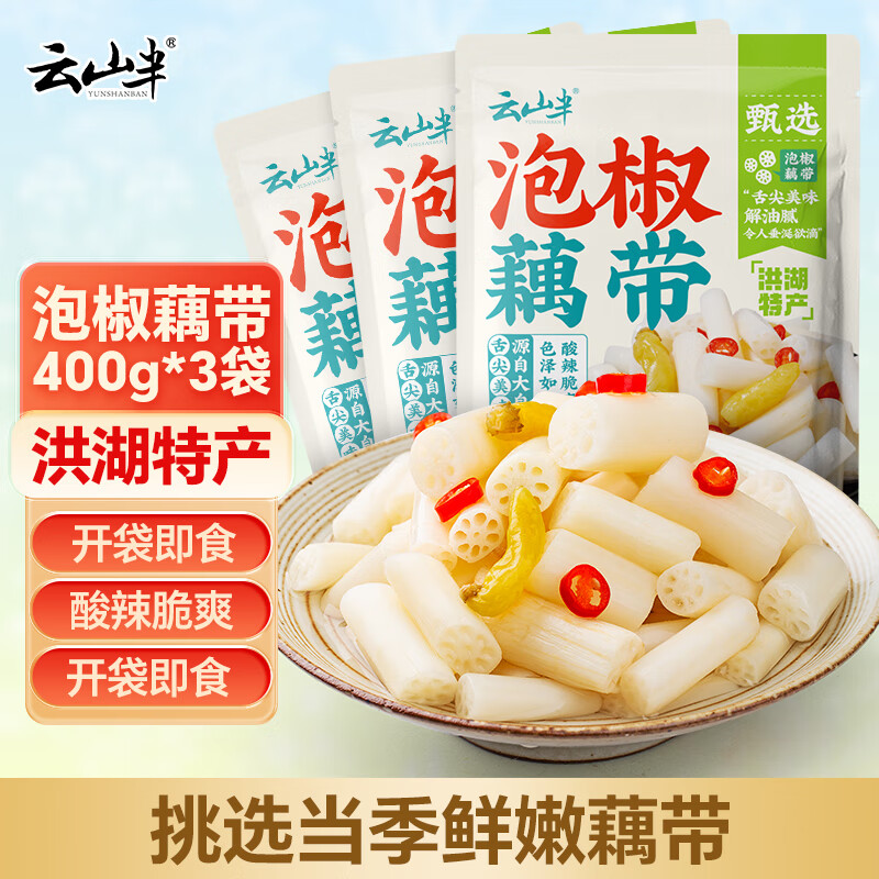 云山半泡椒藕带400g*3袋 方便食品 洪湖特产农家凉菜莲藕尖 开袋即食