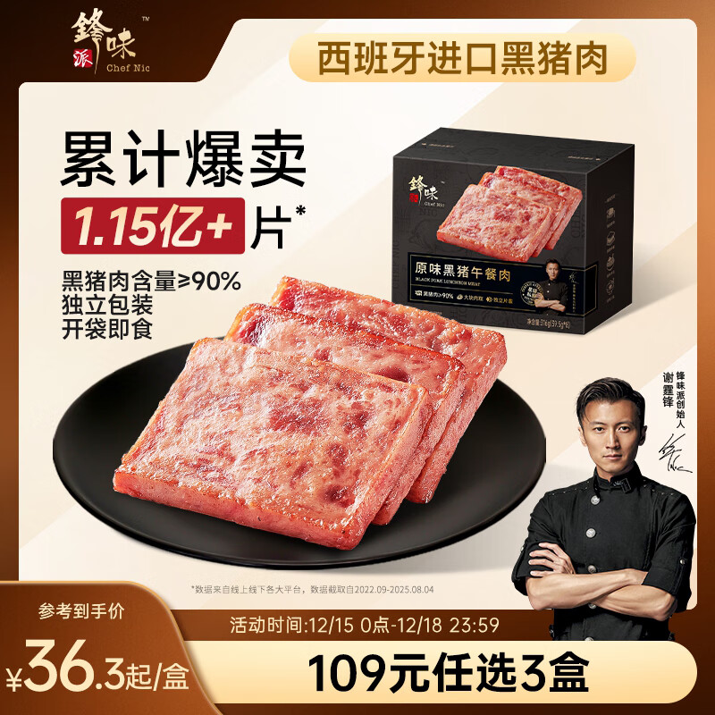 锋味派黑猪午餐肉原味316g/8片独立包装儿童早餐速食火腿肠香肠零食罐头