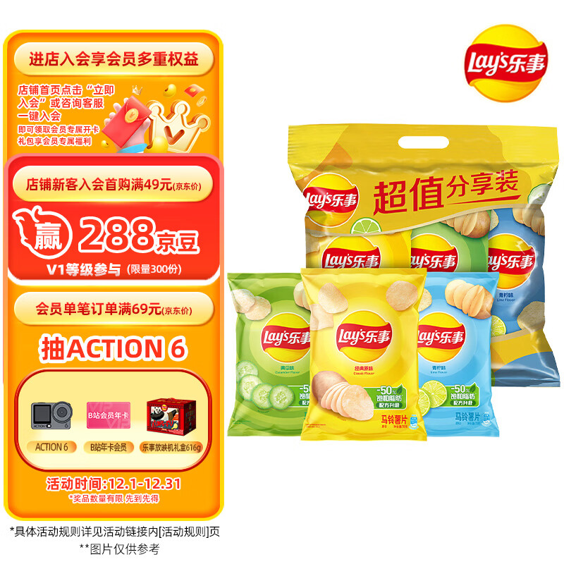 乐事(Lay's)薯片 (原味+黄瓜+青柠) 70克*3包 组合包 零食大礼包 休闲食品