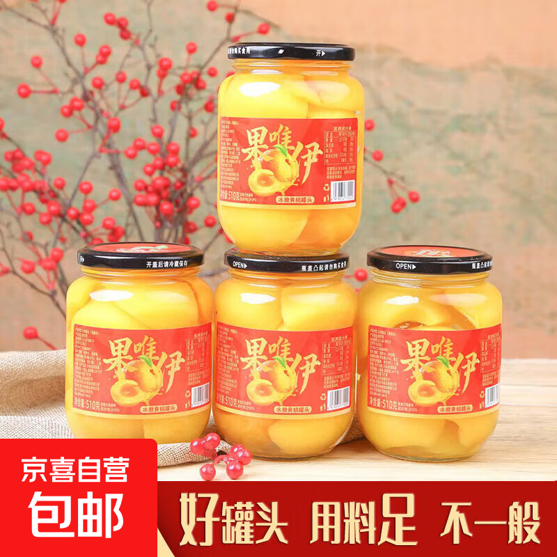 果唯伊新鲜水果罐头糖水饮料多口味即食零食 黄桃罐头510g 4瓶