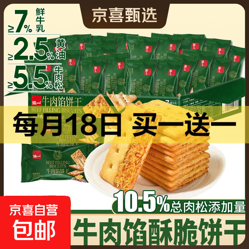 【好评率99%】牛肉馅酥脆饼干点心下午茶一整箱高颜值 泓一牛肉馅饼干 270g/箱*1箱20包 活动价