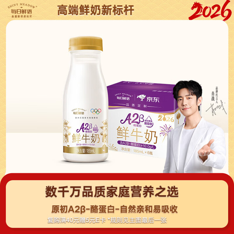 每日鲜语A2β-酪蛋白低温鲜奶巴氏杀菌乳A2β-185ml*6